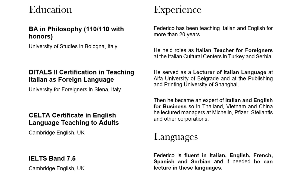 Il nostro team di professionisti certificati DITALS vanta oltre 20 anni di esperienza nell’insegnamento delle lingue. Siamo appassionati nel fornire una formazione di alto livello, progettata su misura per le tue esigenze.